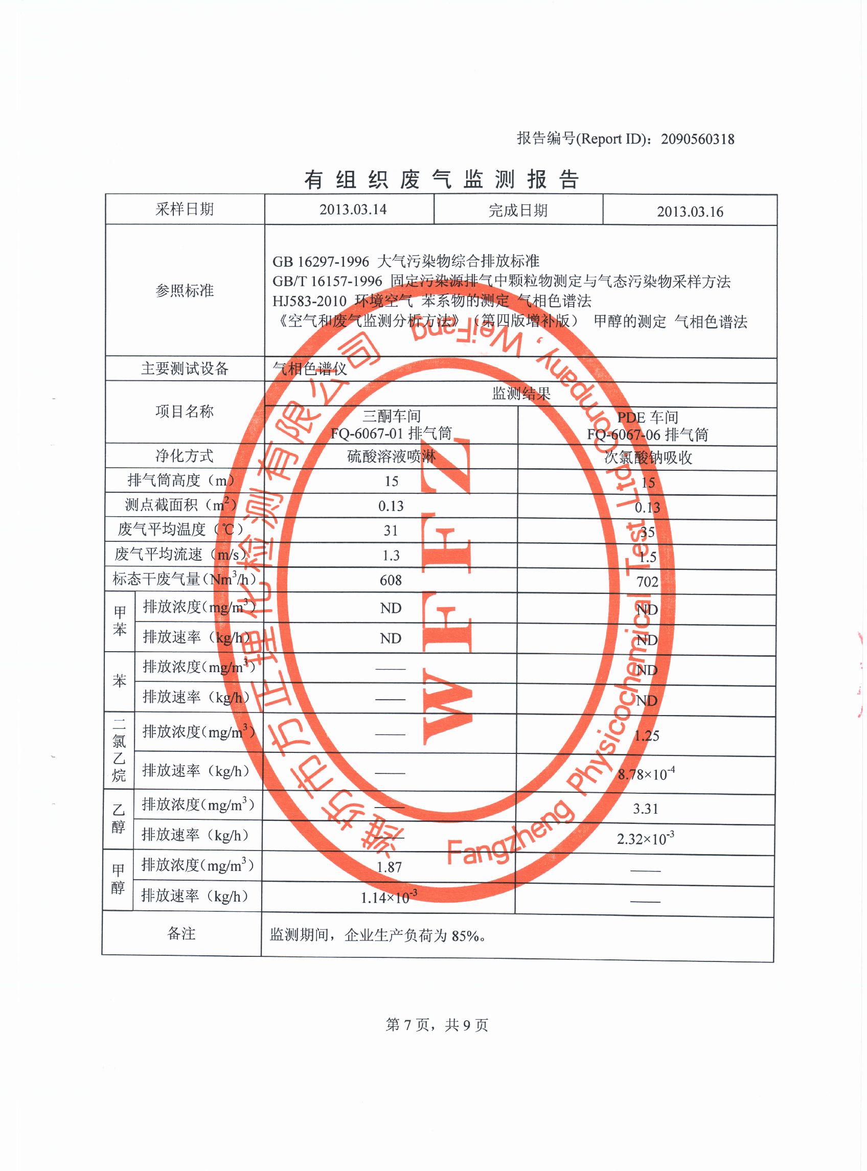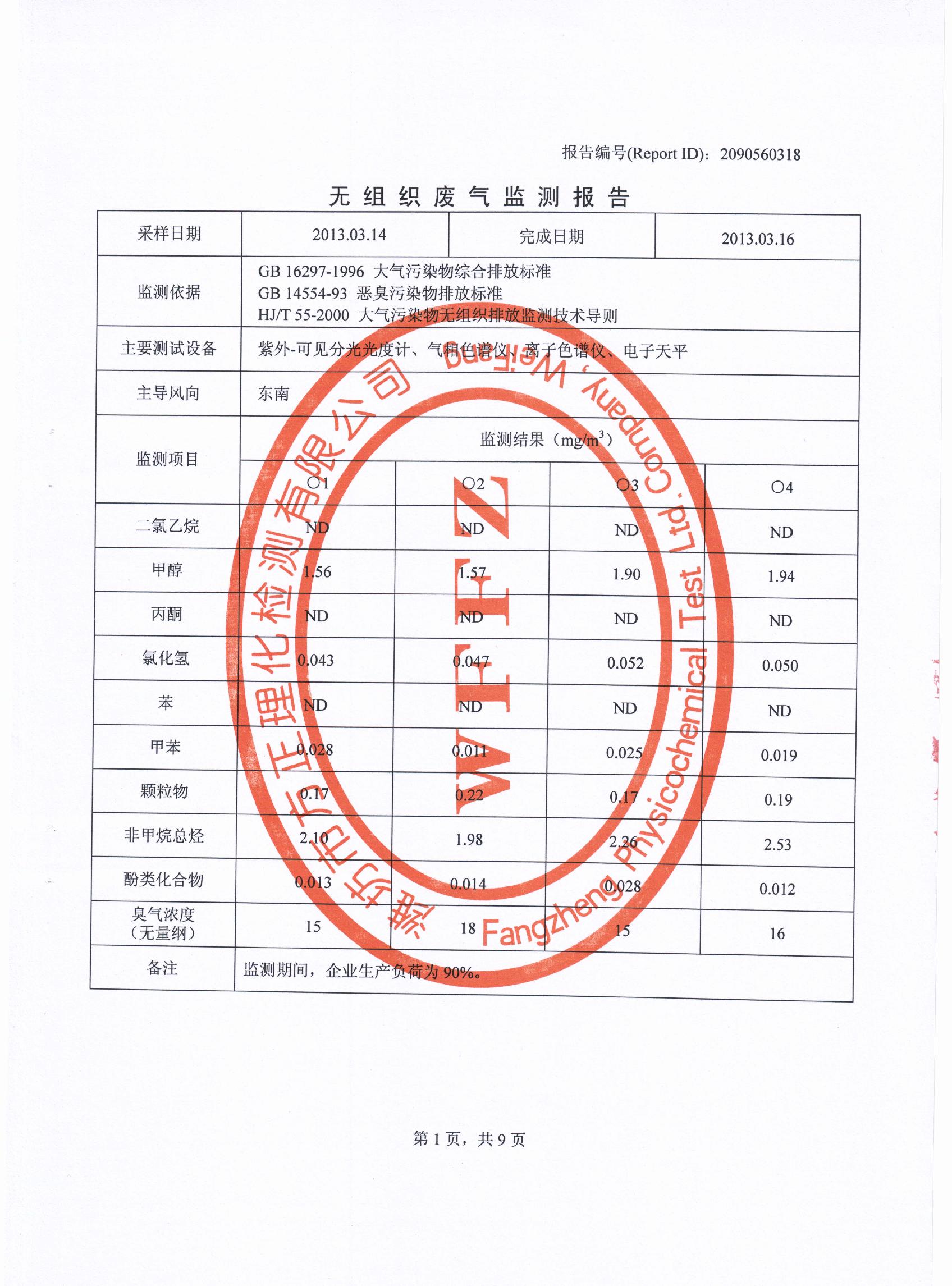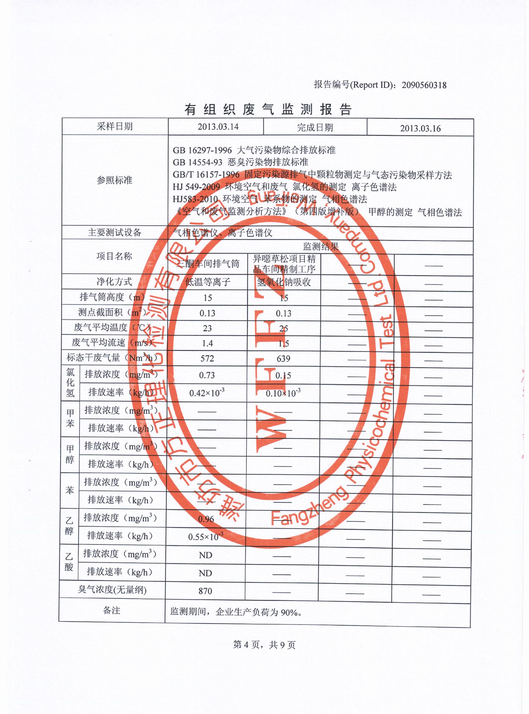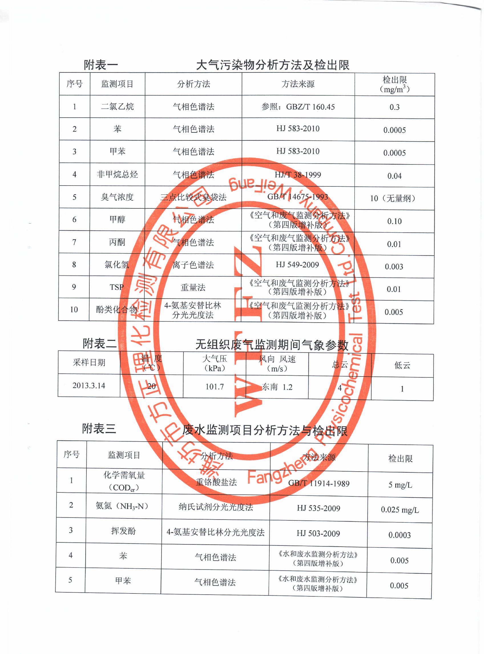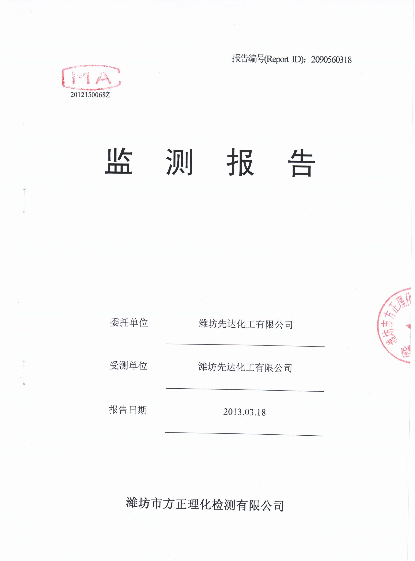 濰坊先達(dá)化工有限公司氣體監(jiān)測報(bào)告2013年第一季度