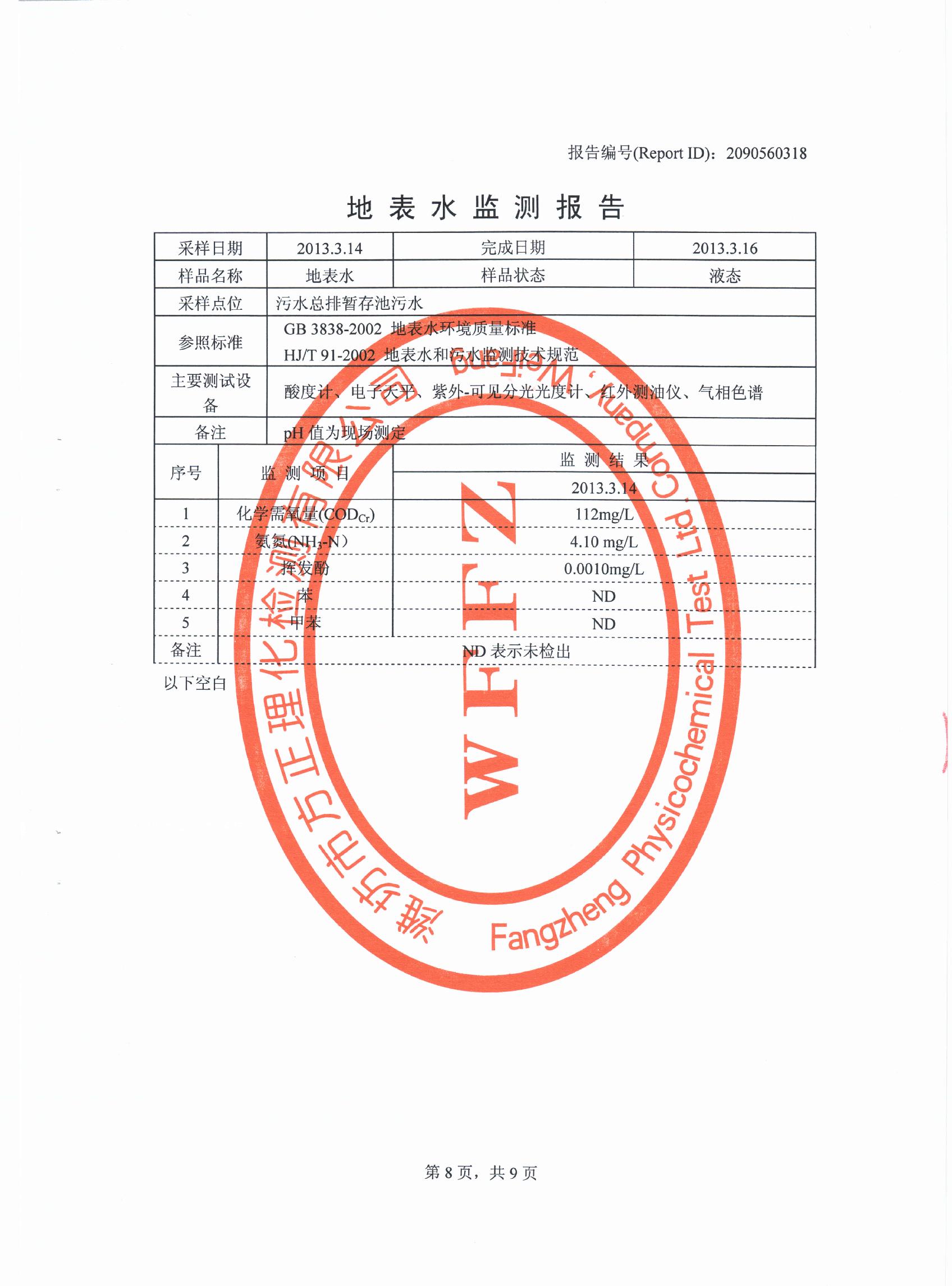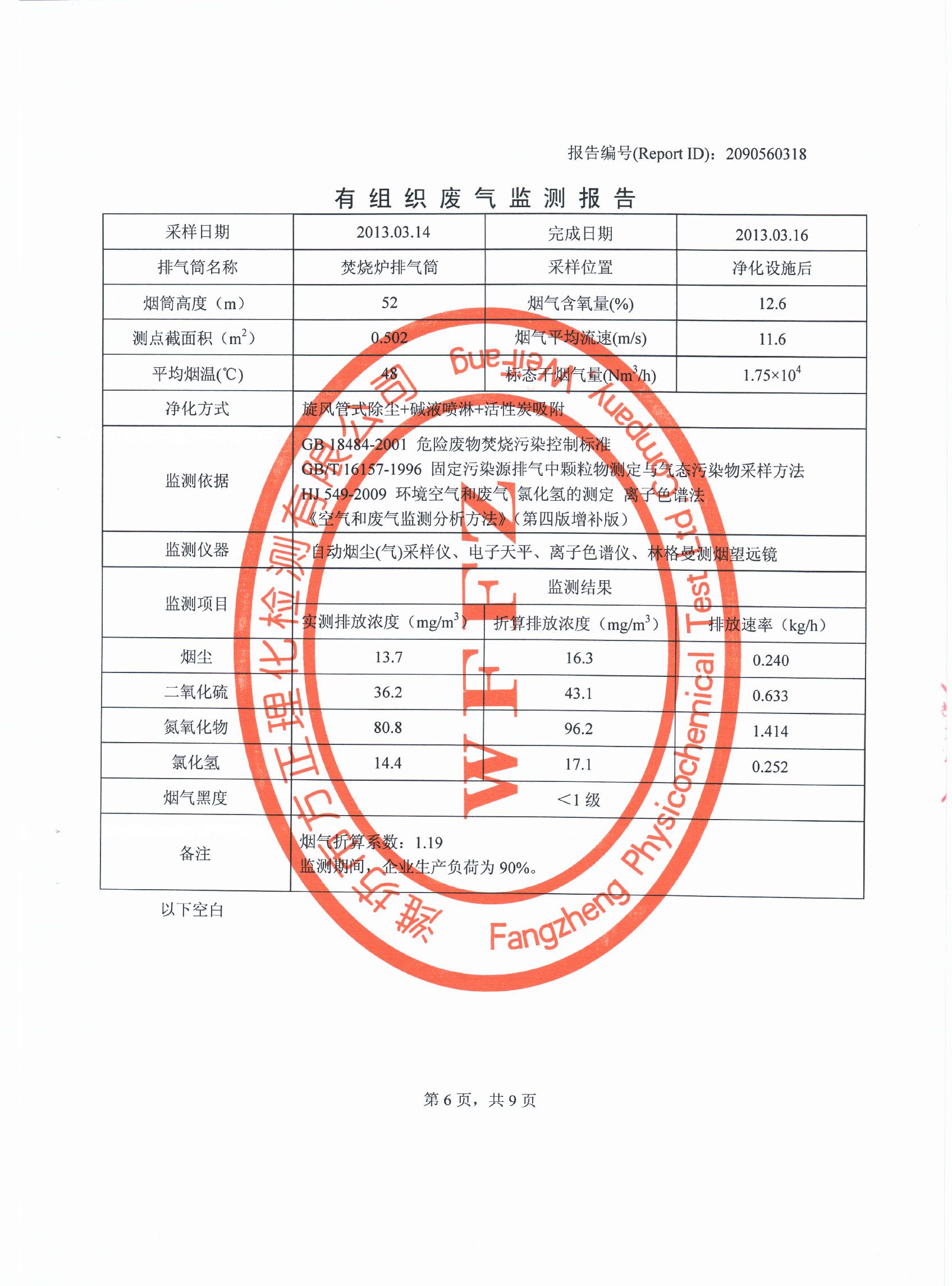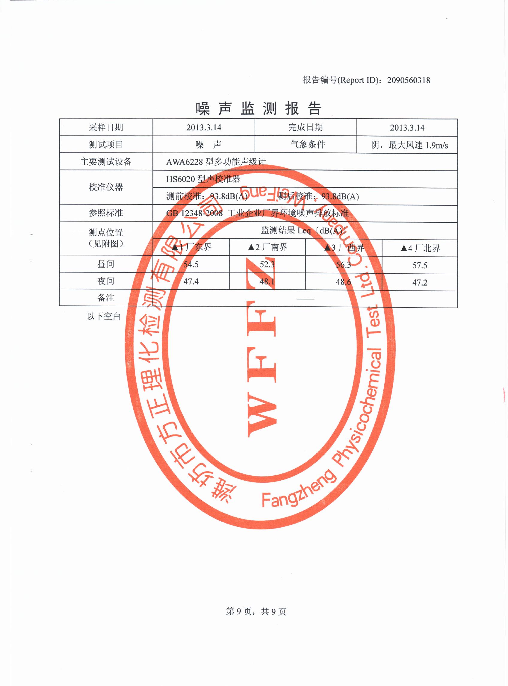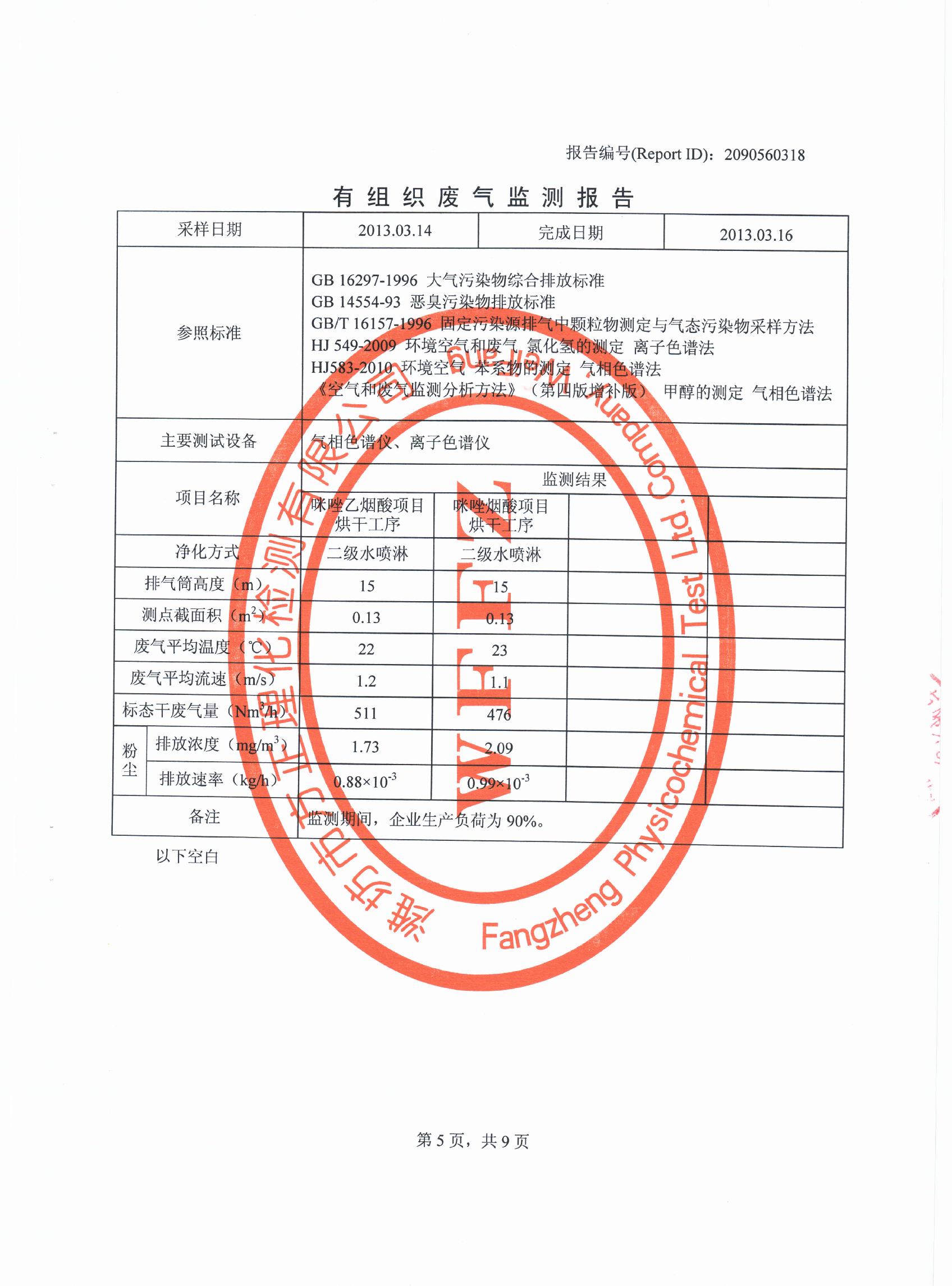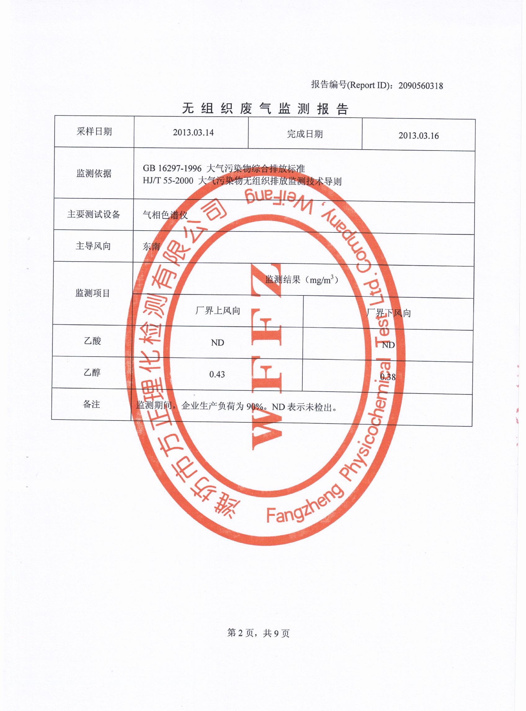 濰坊先達(dá)化工有限公司氣體監(jiān)測報(bào)告2013年第一季度