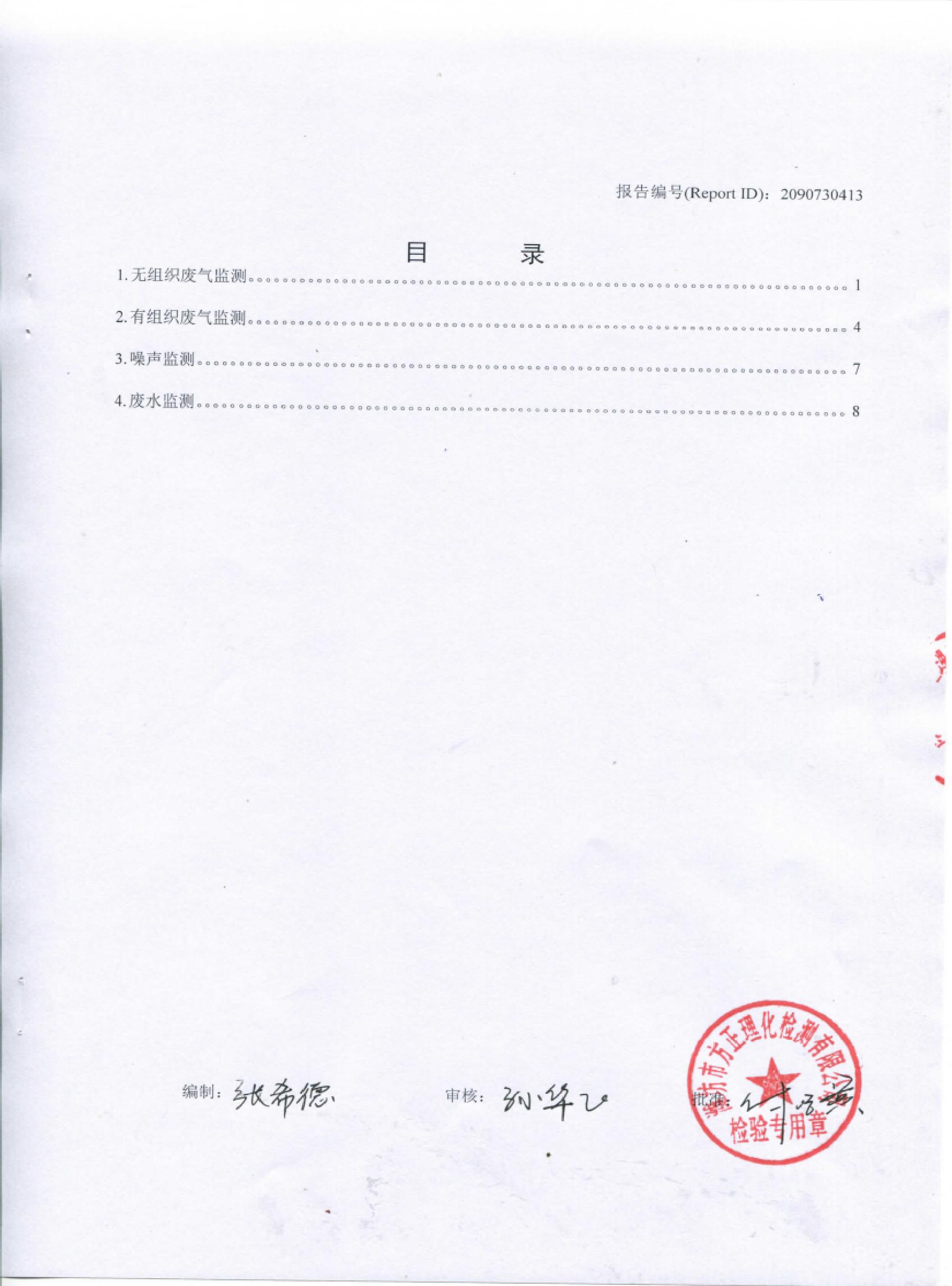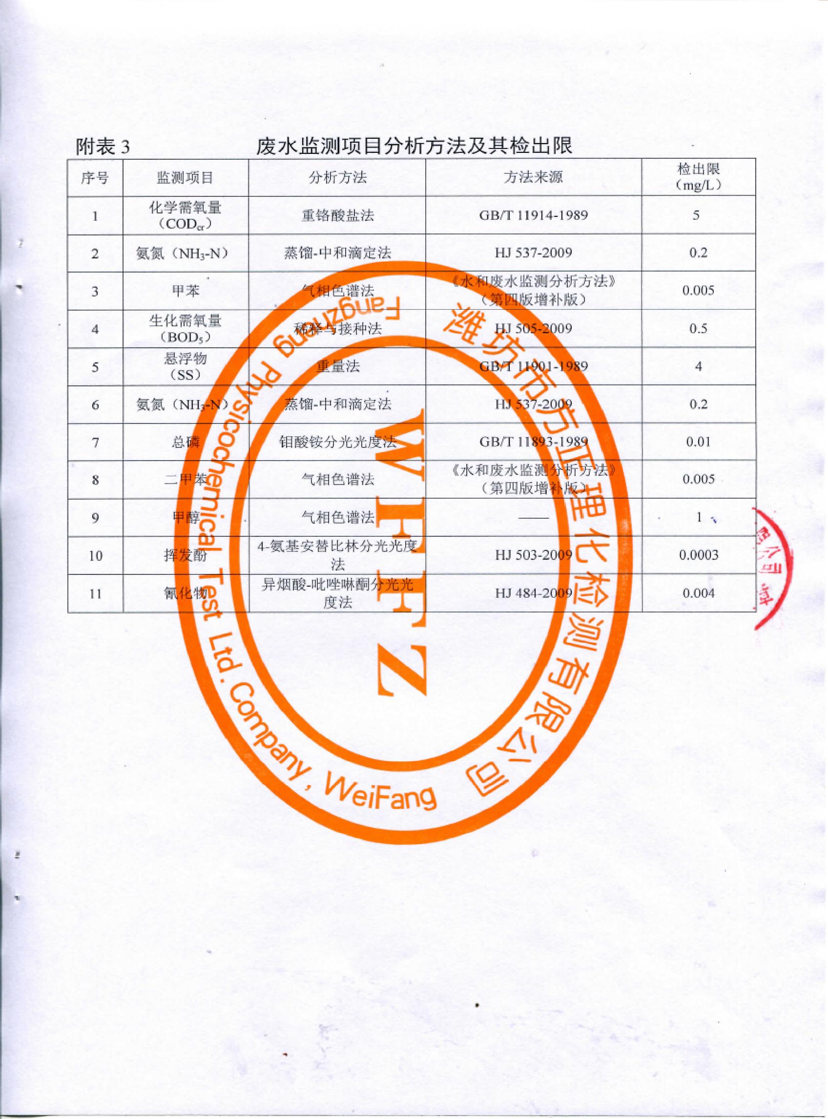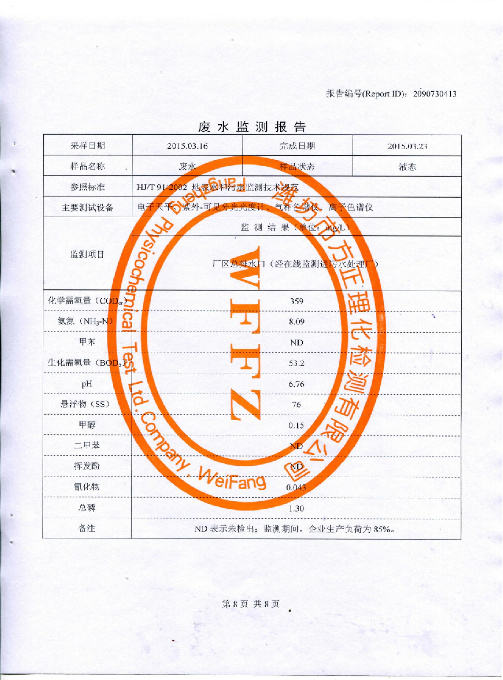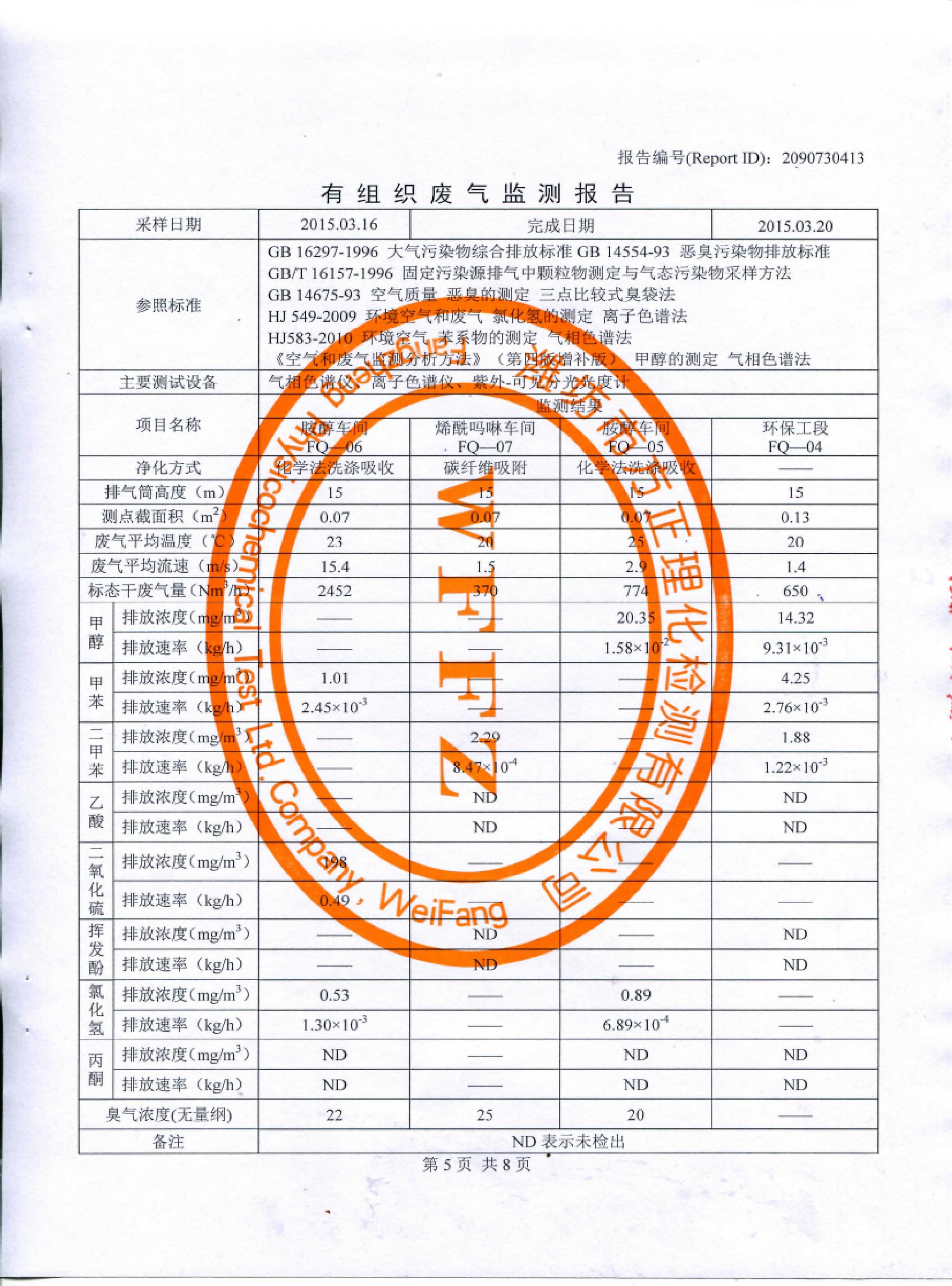 山東先達(dá)農(nóng)化股份有限公司氣體監(jiān)測(cè)報(bào)告2015年第一季度